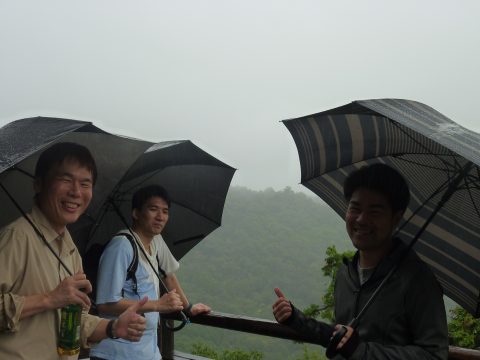 あいにくの天候ではありましたが、雨音が響く自然の中で一部霧がかった神社の道を歩くという