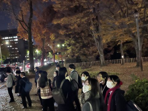 定時退社後の日が暮れてからのウォーキングとなりましたが、皆さん賑やかに和気あいあいとした